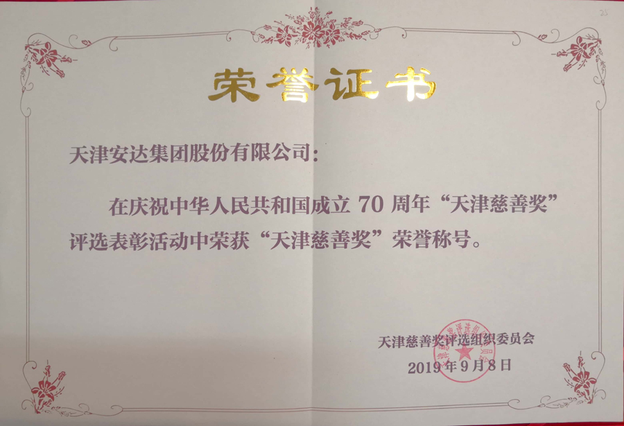 “天津慈善獎”自7月初啟動(dòng),面向十八大以來(lái)為天津市公益慈善事業(yè)和東西部扶貧工作做出突出貢獻的愛(ài)心單位和個(gè)人。在社會(huì )各界推薦、個(gè)人自薦的基礎上,層層選拔,最終,57名個(gè)人、59個(gè)單位榮獲“天津慈善獎”。天津安達集團因多年扶貧助困的愛(ài)心善舉受到表彰,榮獲“天津慈善獎”(單位)稱(chēng)號。
