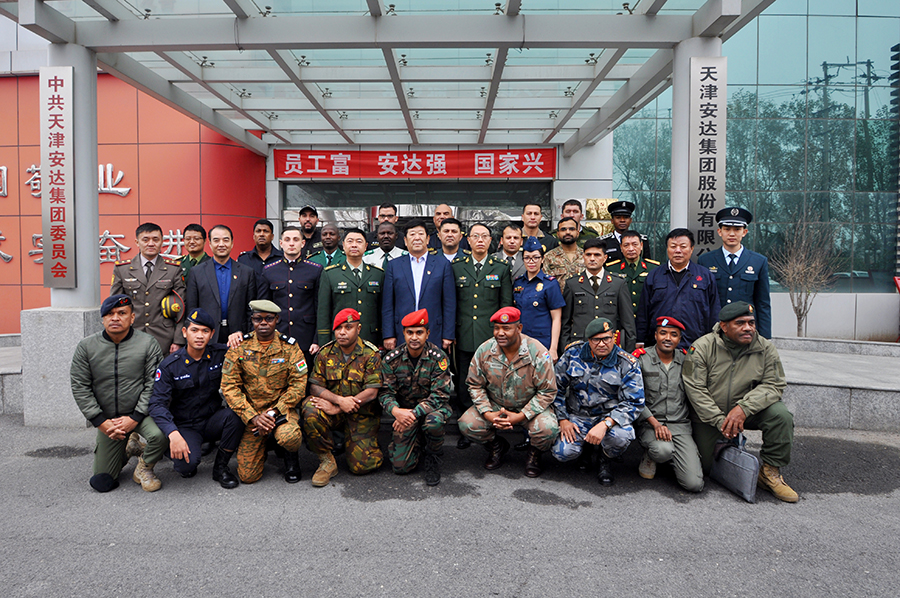 學(xué)員們首先來(lái)到道德講堂,觀(guān)看了企業(yè)宣傳片,隨后崔洪金發(fā)表了熱情洋溢的講話(huà),崔洪金首先向大家介紹了安達集團的發(fā)展歷程及“四大板塊”的經(jīng)營(yíng)成果,并就安達集團多年來(lái)心系國防,擁軍備戰的軍人情結有機的融入企業(yè)文化之中作出精彩詮釋?zhuān)赋觯骸傲暯娇倳?shū)記倡導的‘一帶一路’偉大戰略構想,是為了更好地構建人類(lèi)命運共同體,實(shí)現全世界的共同發(fā)展和人民的共同富裕。安達集團的產(chǎn)品已經(jīng)遠銷(xiāo)到西亞、非洲、澳洲、南美洲等多個(gè)國家和地區,我們將借助‘一帶一路’,走向更多的國家的地區,與更多的國家和地區建立商業(yè)往來(lái),以更優(yōu)的產(chǎn)品服務(wù)更多的用戶(hù)、造福更多的人民?!贝藓榻鹫f(shuō):“我是一名退役軍人,安達集團更是先后安置過(guò)500余名退役軍人在這里就業(yè),我們與軍人有著(zhù)不解之緣。我愿意與你們所有人都成為朋友,并通過(guò)你們與你們國家的人民成為朋友。蘇格蘭有一首非常有名的詩(shī)歌,后來(lái)被譜為歌曲,在全世界廣為流傳,逐漸成為膾炙人口的名曲,翻譯成中文名叫《友誼地久天長(cháng)》,愿安達與你們友誼地久天長(cháng),愿中國與你們的國家友誼地久天長(cháng)!”武警指揮學(xué)院的領(lǐng)導及各國外訓軍官學(xué)員對崔洪金的講話(huà)報以熱烈掌聲,武警指揮學(xué)院領(lǐng)導胡金紅代表全體外訓學(xué)員向崔洪金董事長(cháng)贈送紀念徽章以示敬意。