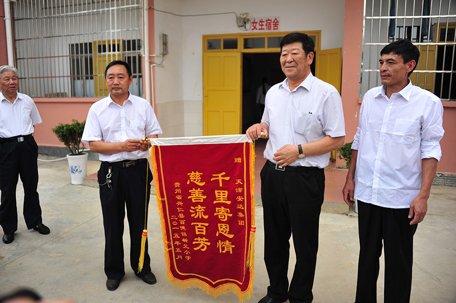 2012年10月,崔洪金董事長(cháng)隨中國愛(ài)心工作委員會(huì )重走紅軍長(cháng)征路,赴貴州革命老區考察調研,得知貴州貧困地區急需資金修建偏遠少數民族校舍,當即捐款400萬(wàn)元為當年紅軍長(cháng)征路上的興仁縣雨樟鎮中學(xué)、興仁縣百德鎮新元小學(xué)、荔波縣撈村鄉中心小學(xué)、荔波縣水利鄉中心小學(xué)等四所少數民族學(xué)校修建校舍??疾焱局?,又為貴州黔南自治州荔波縣駕歐鄉綠林小學(xué)捐資15萬(wàn)元修建食堂。2015年他又向貴州省習水縣四渡赤水青杠坡戰役所在地的青杠小學(xué)捐贈120萬(wàn)修建校舍。崔董事長(cháng)先后為貴州黔東南革命老區捐款共計535萬(wàn)元。這些善心善舉,不僅為老區的困難群眾、莘莘學(xué)子帶來(lái)真切幫助和愛(ài)心援助,更在社會(huì )各界引起強烈反響。