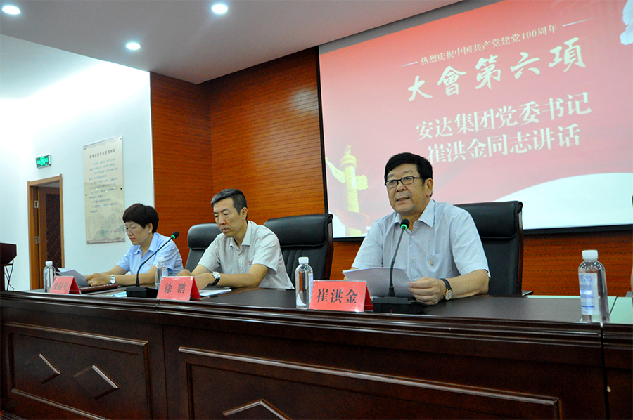 7月1日上午8時(shí),安達集團全體黨員和職工群眾代表90余人滿(mǎn)懷喜悅、豪邁、激動(dòng)的心情,齊聚集團多功能會(huì )議廳,收看習近平總書(shū)記在慶祝中國共產(chǎn)黨成立100周年大會(huì )上的講話(huà)及慶典盛況。安達人手持鮮艷的黨旗,在聆聽(tīng)習總書(shū)記講話(huà)中與全國人民一同感受百年磨礪奮斗中,中國共產(chǎn)黨矢志踐行初心使命,篳路藍縷奠基立業(yè),團結帶領(lǐng)全國各族人民沿著(zhù)正確方向堅定前行、創(chuàng )造輝煌、開(kāi)辟未來(lái)的光輝歷程;一同感受一百年來(lái),一代又一代中國共產(chǎn)黨人,為贏(yíng)得民族獨立和人民解放、實(shí)現國家富強和人民幸福,前仆后繼、浴血奮戰,艱苦奮斗、無(wú)私奉獻,譜寫(xiě)氣吞山河英雄壯歌的偉大歷史貢獻。