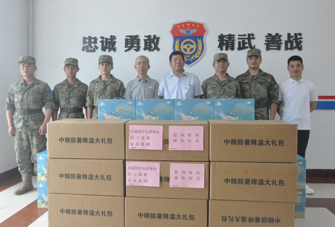 為慶祝中國人民解放軍建軍96周年,進(jìn)一步深化軍地軍民共建關(guān)系,在八一建軍節來(lái)臨之際,安達集團聯(lián)合區退役軍人事務(wù)局、區工商聯(lián)、豐年街道開(kāi)展走訪(fǎng)慰問(wèn)駐區部隊活動(dòng),為部隊廣大官兵送去節日的祝賀和誠摯的慰問(wèn)。