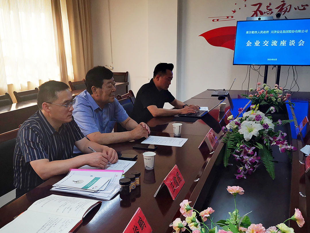 當天下午,庫爾勒市政府副市長(cháng)楊松波、庫爾勒市商務(wù)和工業(yè)信息化局黨組書(shū)記、副局長(cháng)王偉,庫爾勒市退役軍人事務(wù)局、市容環(huán)衛事務(wù)中心、商工局、上庫高新產(chǎn)業(yè)技術(shù)開(kāi)發(fā)區分管領(lǐng)導與安達集團黨委書(shū)記、董事長(cháng)崔洪金,安達集團董事長(cháng)助理王俊鵬,安達集團分公司天津鴻達精工機械有限公司經(jīng)理莊儒國以及財金城倉(庫爾勒)環(huán)??萍加邢薰靖笨偨?jīng)理吳江濤共同參加座談會(huì )。