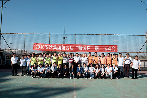 為豐富員工業(yè)余文化生活,增強員工身體素質(zhì),培養團隊協(xié)作精神,促進(jìn)廣大員工之間的交流。2016年9月19日,安達集團第四屆“和諧杯”職工運動(dòng)會(huì )第二階段,即“十一國慶文體活動(dòng)”正式開(kāi)始。當日下午四時(shí)籃球比賽準時(shí)開(kāi)始,東麗區工商聯(lián)會(huì )員企業(yè)黨委書(shū)記張耀國親臨現場(chǎng)為雙方隊伍開(kāi)球,比賽中,雙方隊員本著(zhù)“友誼第一、比賽第二”的宗旨,積極進(jìn)攻,嚴密防守,整場(chǎng)比賽不僅打出了虎虎生威的士氣,也打出了隊員們的精氣神。